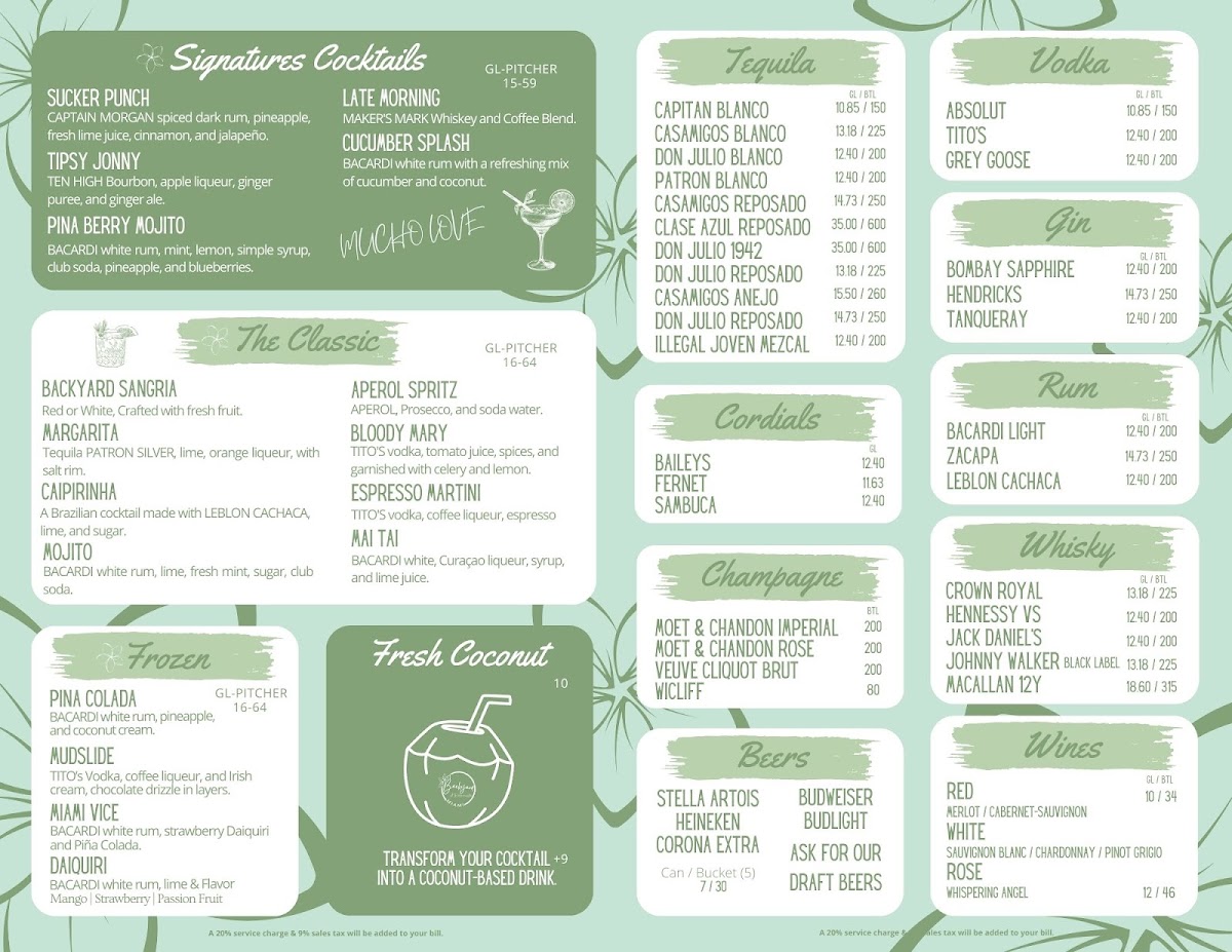 The cocktails are a standout feature, with signature drinks like the piña berry mojito and the coconut mojito receiving rave reviews for their balanced flavors of sweet, sour, and tangy. The full bar complements the vibrant atmosphere, allowing for a variety of choices to quench your thirst. With bartenders like Ray and Melina at the helm, your drink experience is sure to be memorable.